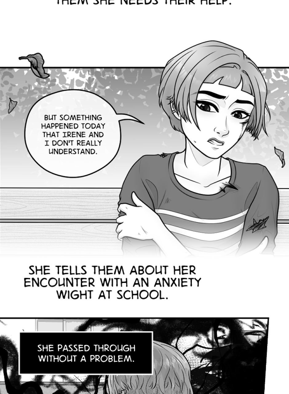 She tells them about her encounter with an ANXIETY WIGHTÂ at school.